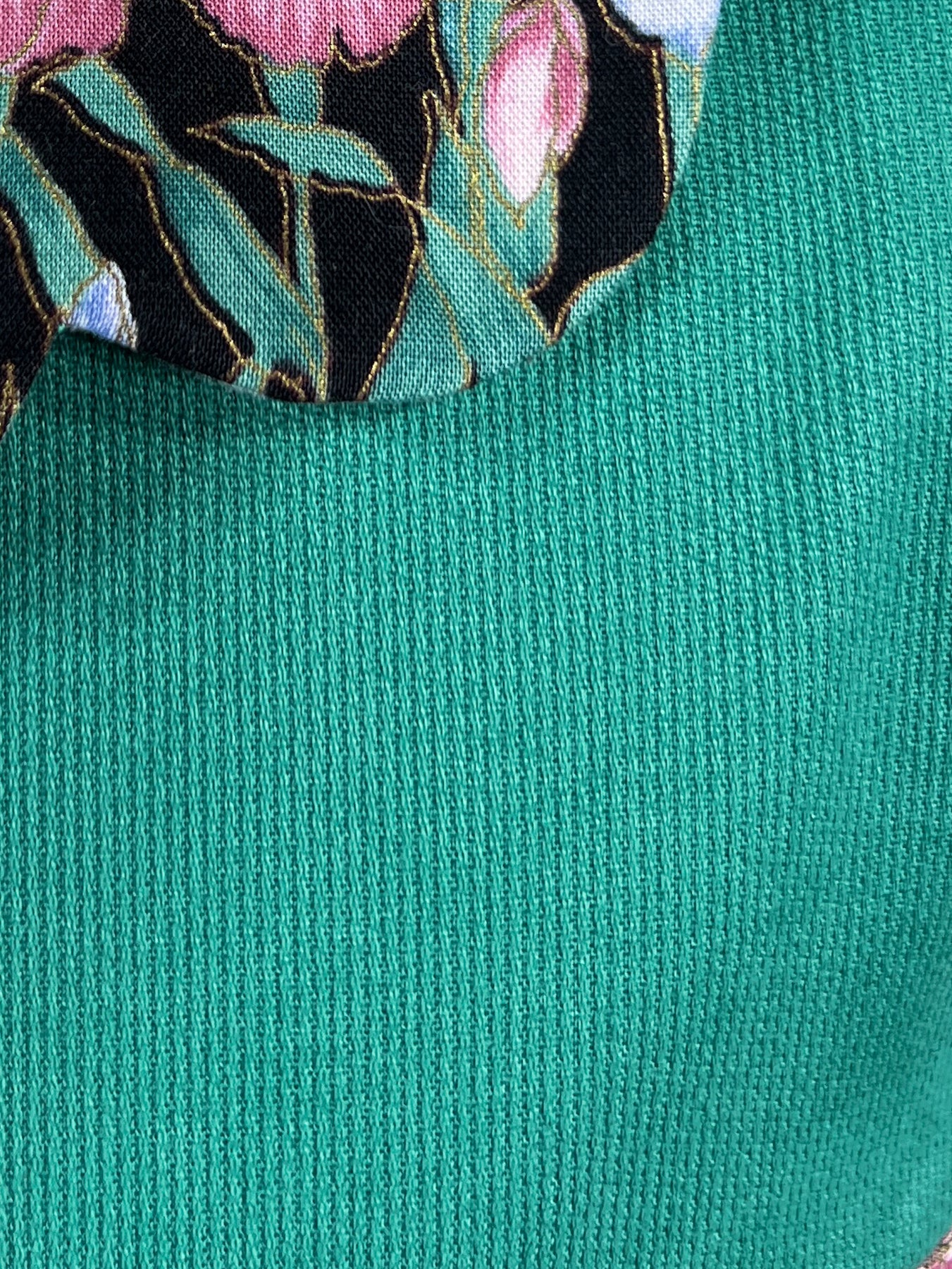 The Persian Green dress captures the grace of a spring garden in full bloom. Crafted from remarkably soft cotton piqué in a vivid green, this artistic piece features an exquisite William Morris inspired print on black background. Delicate irises in pale blue and lavender mingle with pink blooms, their ruffled petals and graceful foliage outlined by a subtle gold thread creating a romantic botanical tapestry against the jewel toned base.