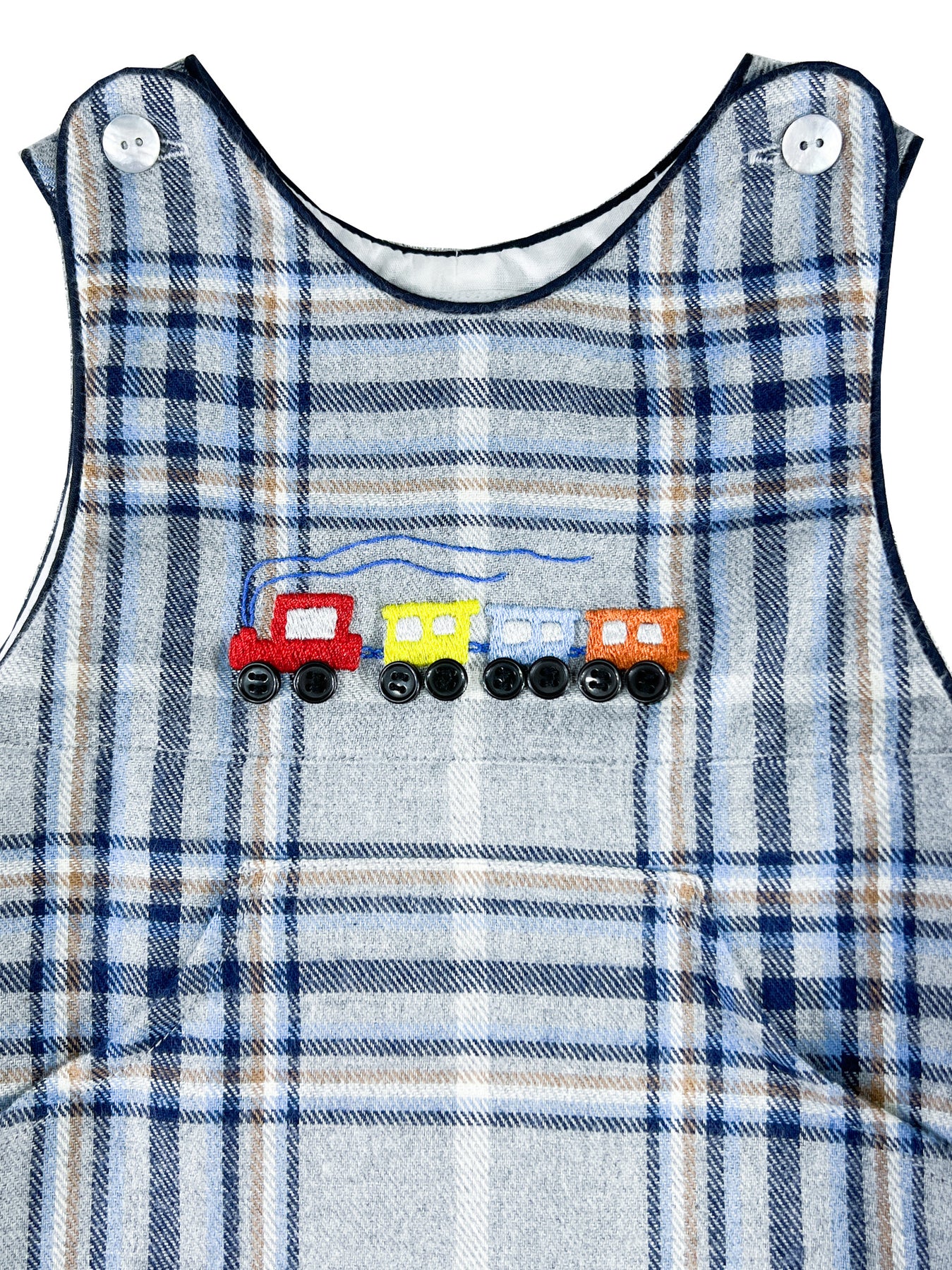 Cette tenue célèbre l'aventure et l'imagination de l'enfance. La broderie de train évoque les voyages, l'excitation des voyages en train, et cette fascination universelle que les enfants ont pour les trains.