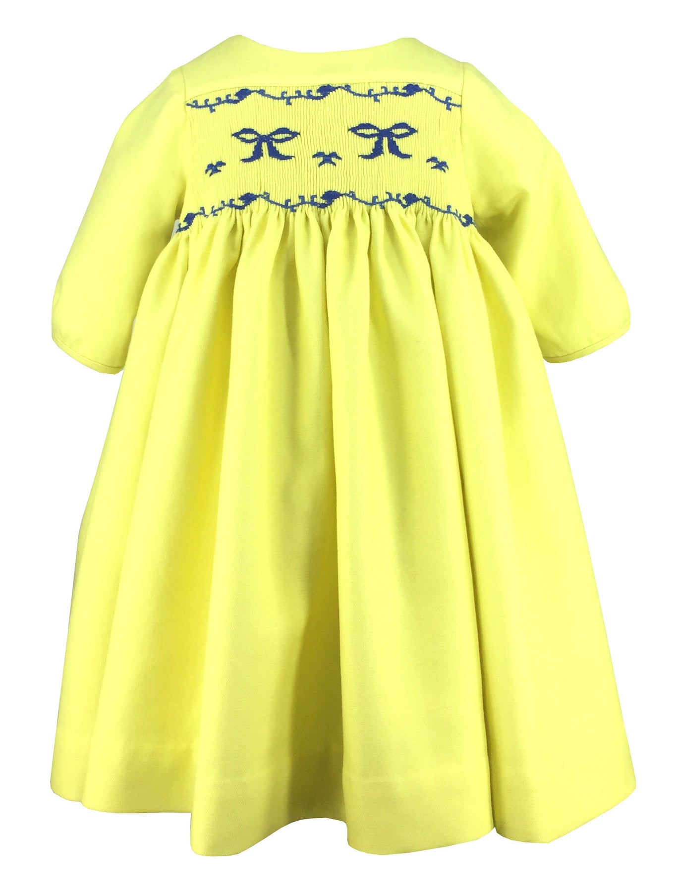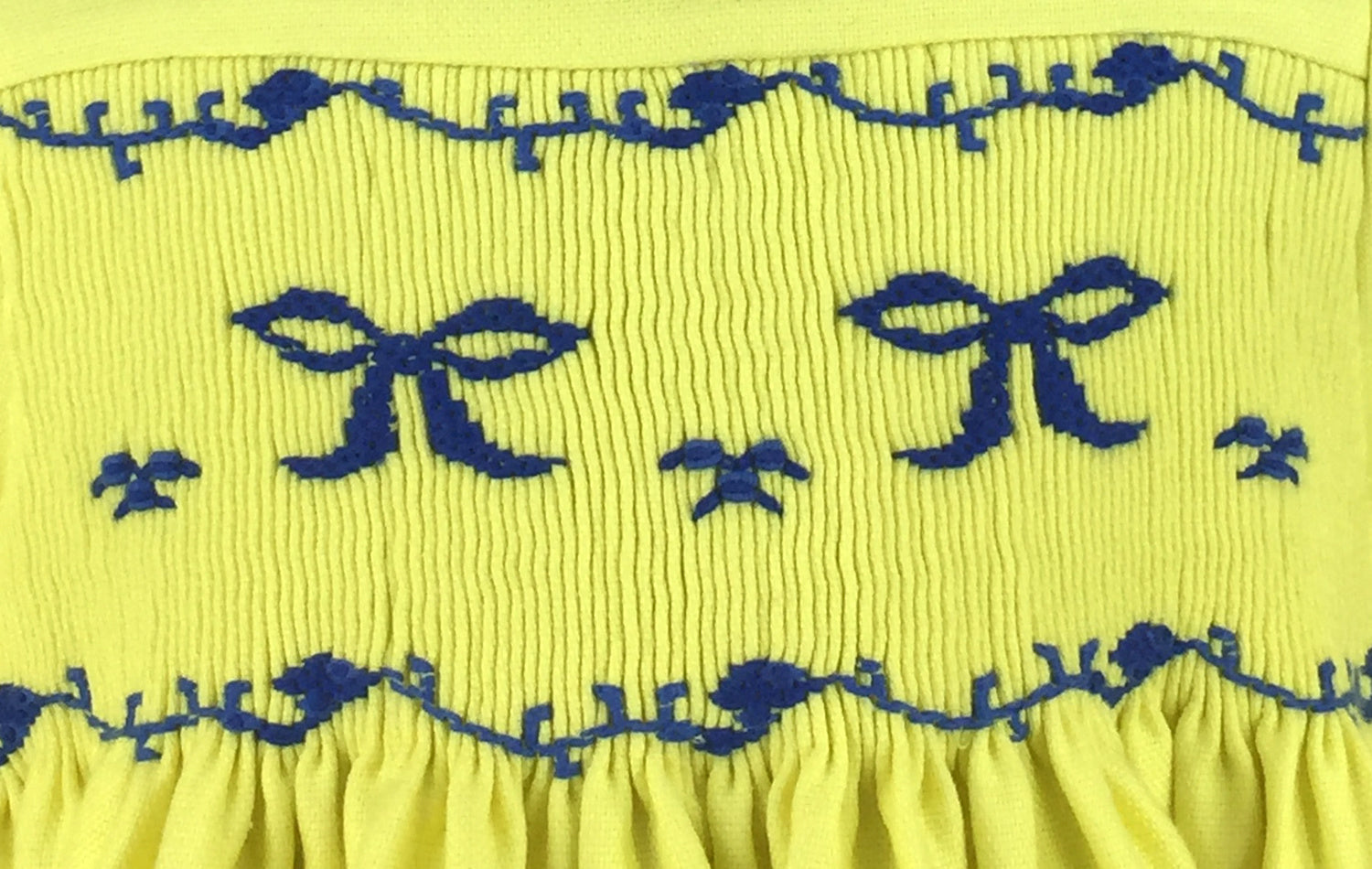 May this bright lemon shade and pretty blue bow shaped smocks bring you much energy and happiness!
