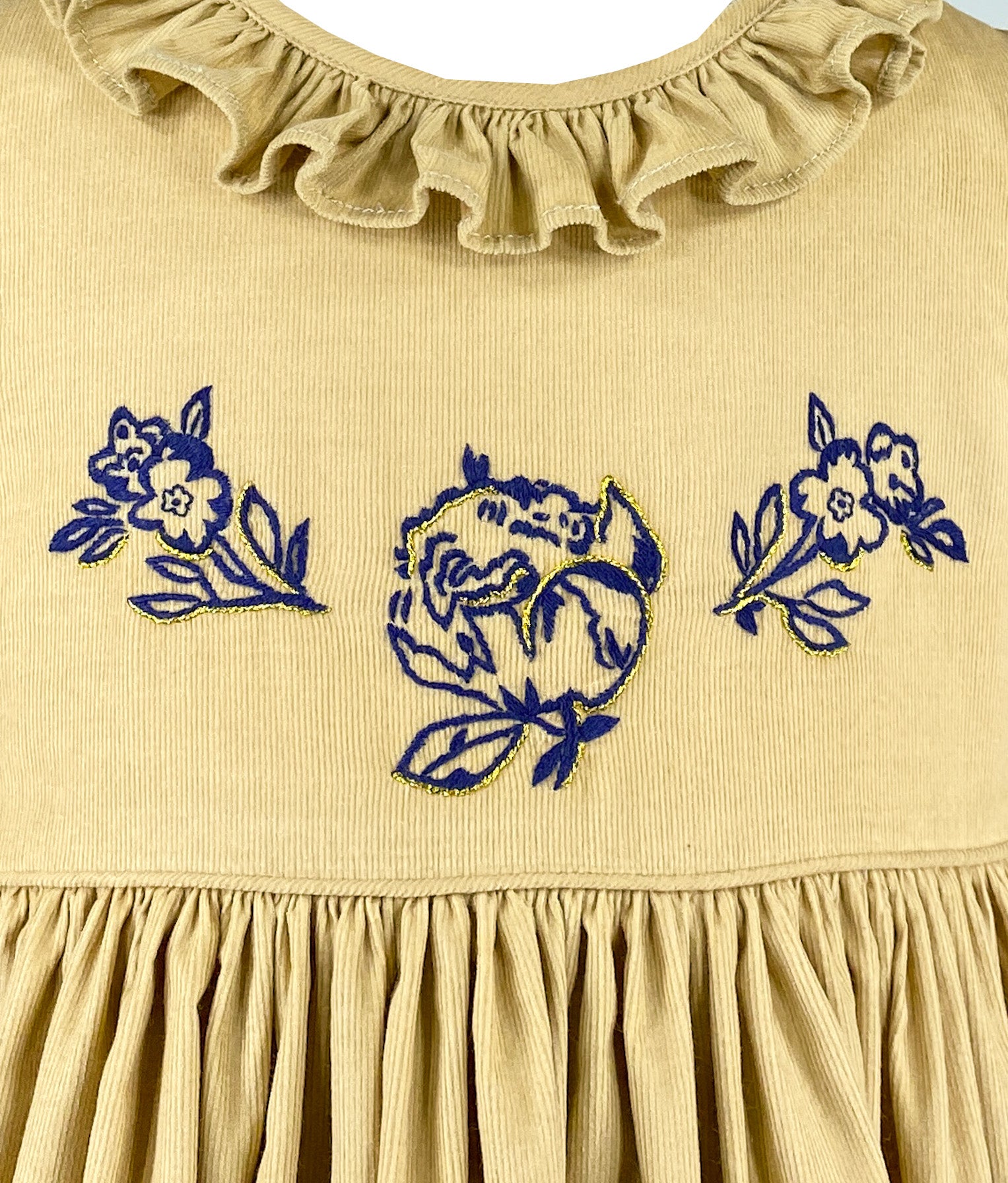 This dress captures that magical transformation, honoring those fleeting moments when beauty reaches such heights that it takes your breath away. The golden velvet represents those warm rays that transform everything they touch, while the embroidered flowers celebrate nature's ability to create masterpieces from the simplest elements.