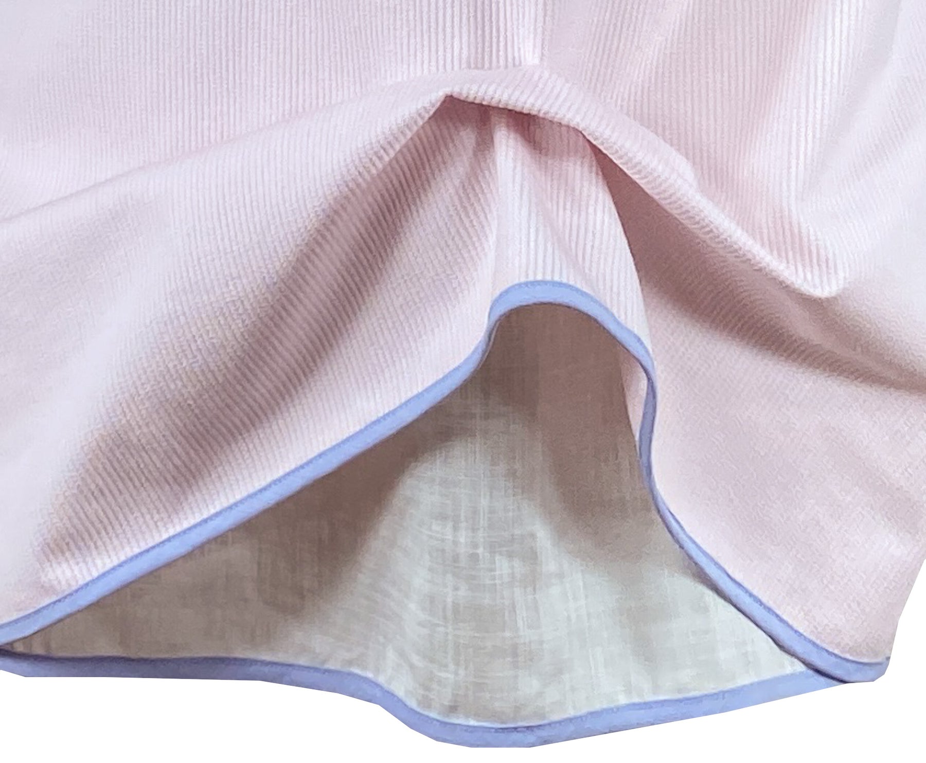 The sophisticated lilac hem trim provides a subtle color contrast that elevates the overall design, while the under-skirt lining with matching lilac trim ensures comfort and creates beautiful movement.