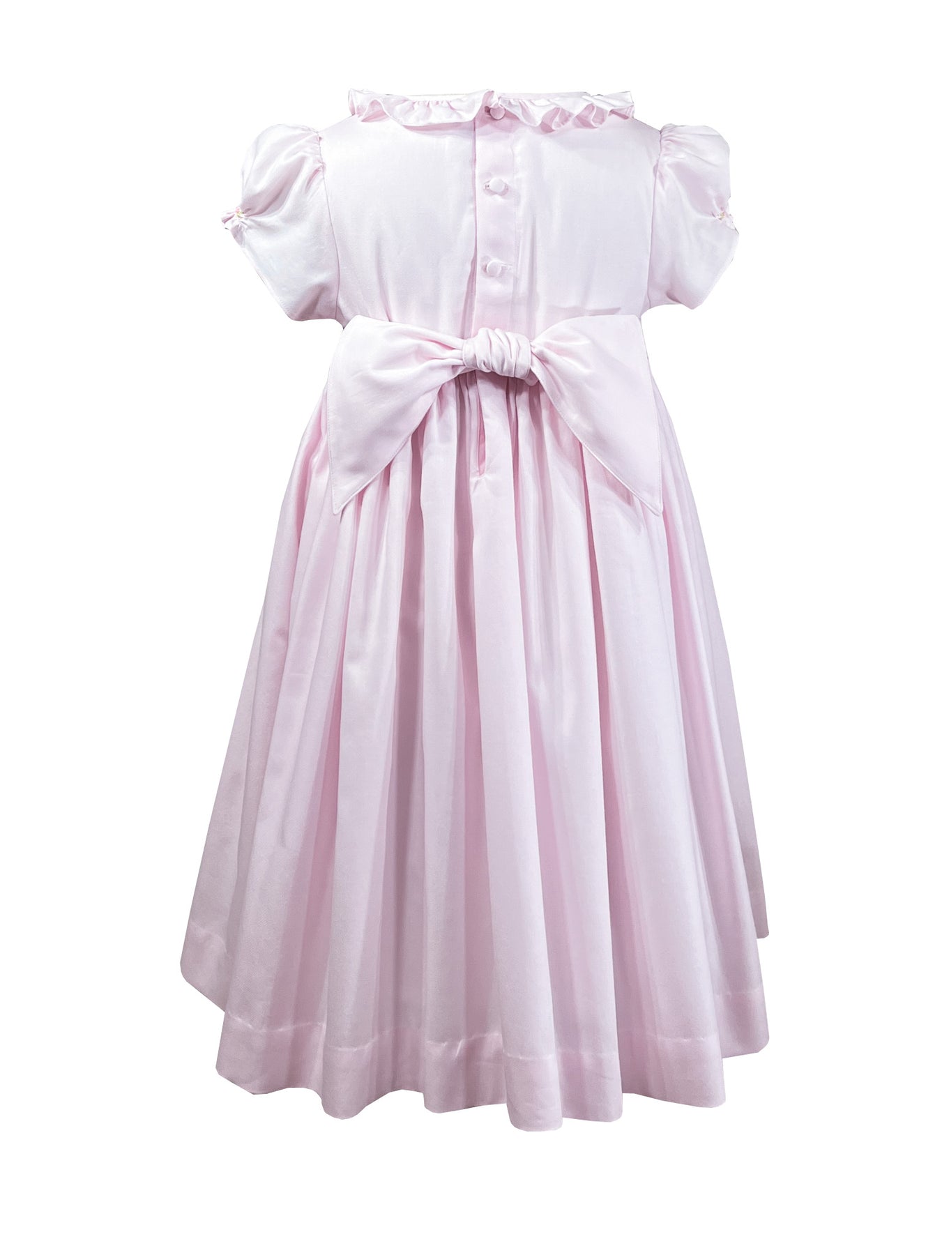 Each tiny macaron is lovingly crafted with meticulous detail, capturing the whimsical charm and elegance of France's most beloved treat. A wide willow collar frames the face with elegance whilst puffed sleeves gathered at the cuff with rosette embroideries add additional charm. Our signature butterfly bow at the back cinches the waist ensuring a perfect fit.