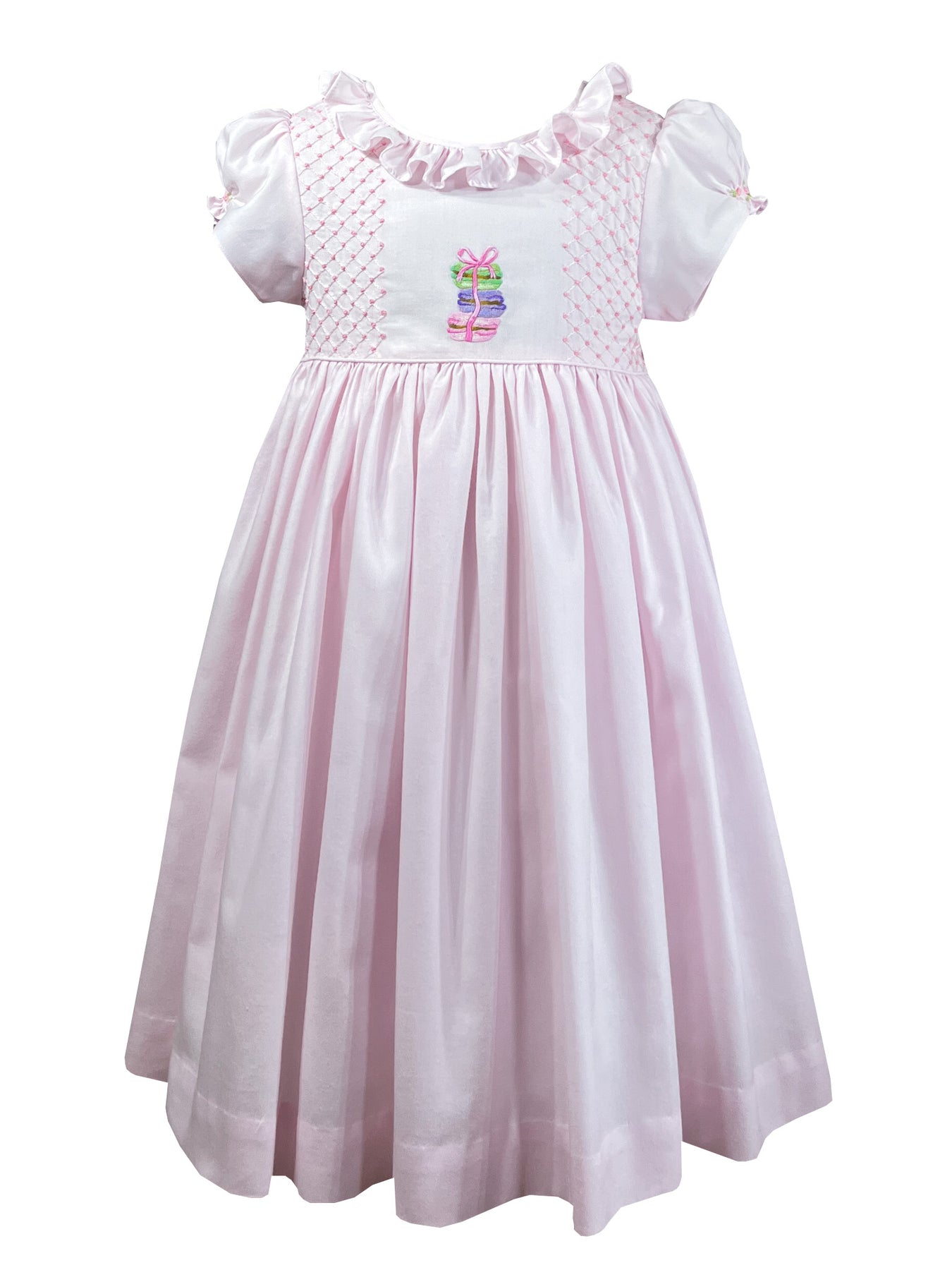 Perfect for creating unforgettable memories at iconic Parisian patisseries like the legendary Ladurée, sophisticated Angelina, or the renowned Pierre Hermé, this dress transforms every little girl into a true Parisienne. The soft blush pink hue mirrors the romantic rosy glow of Parisian sunsets, while the hand-embroidered macarons add a touch of playful sophistication that's quintessentially French.
