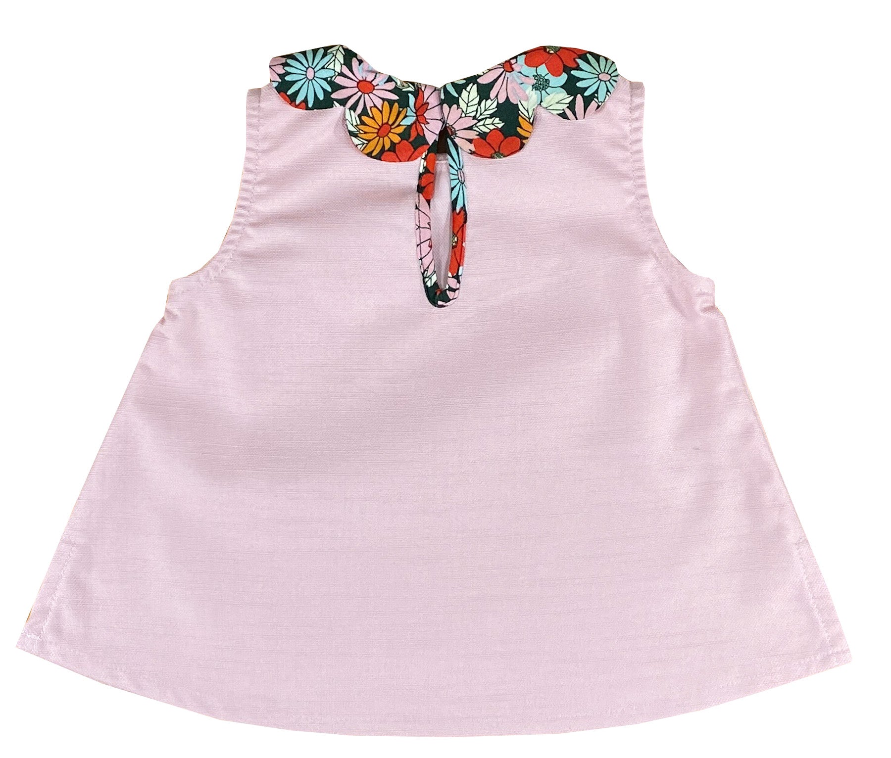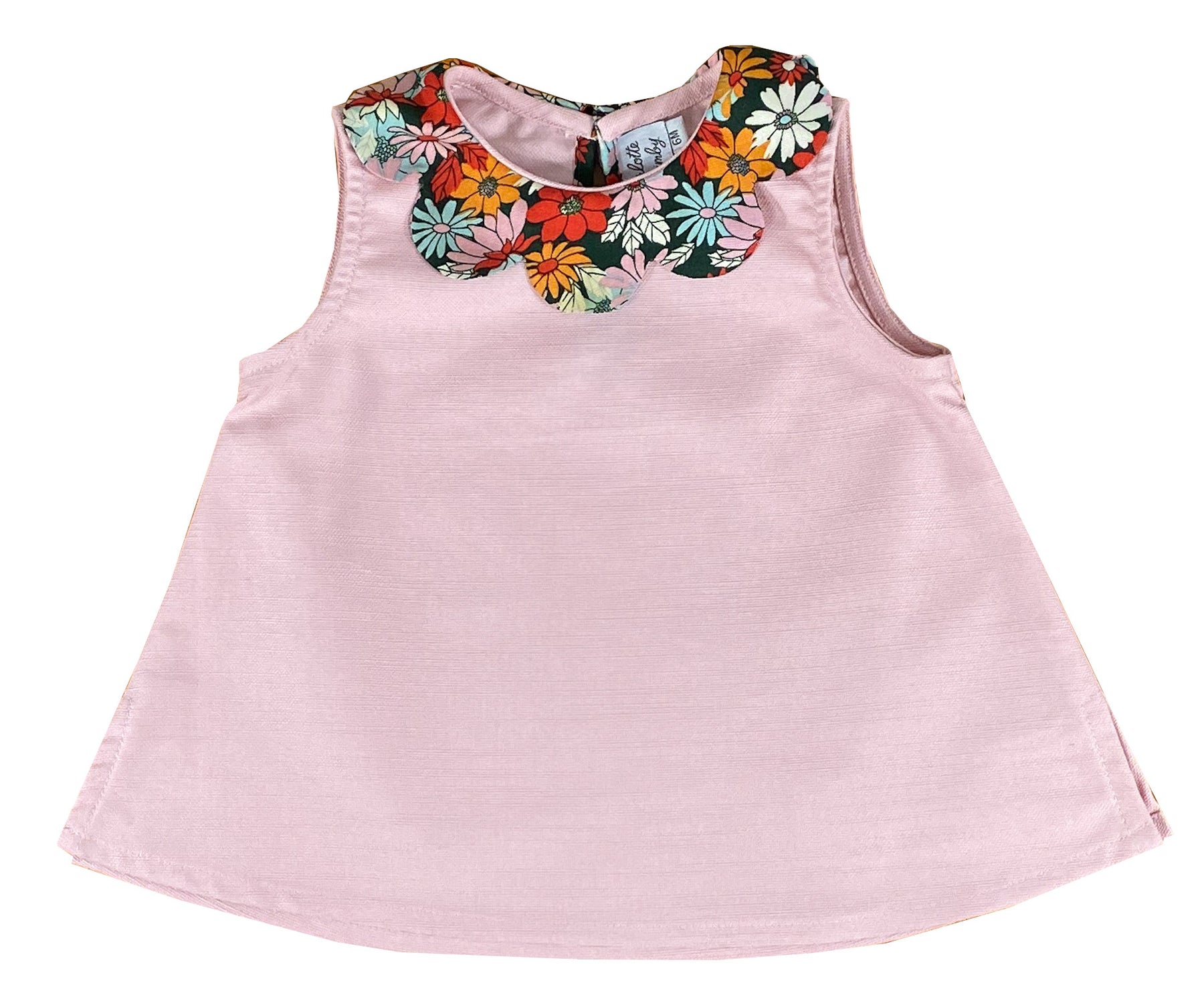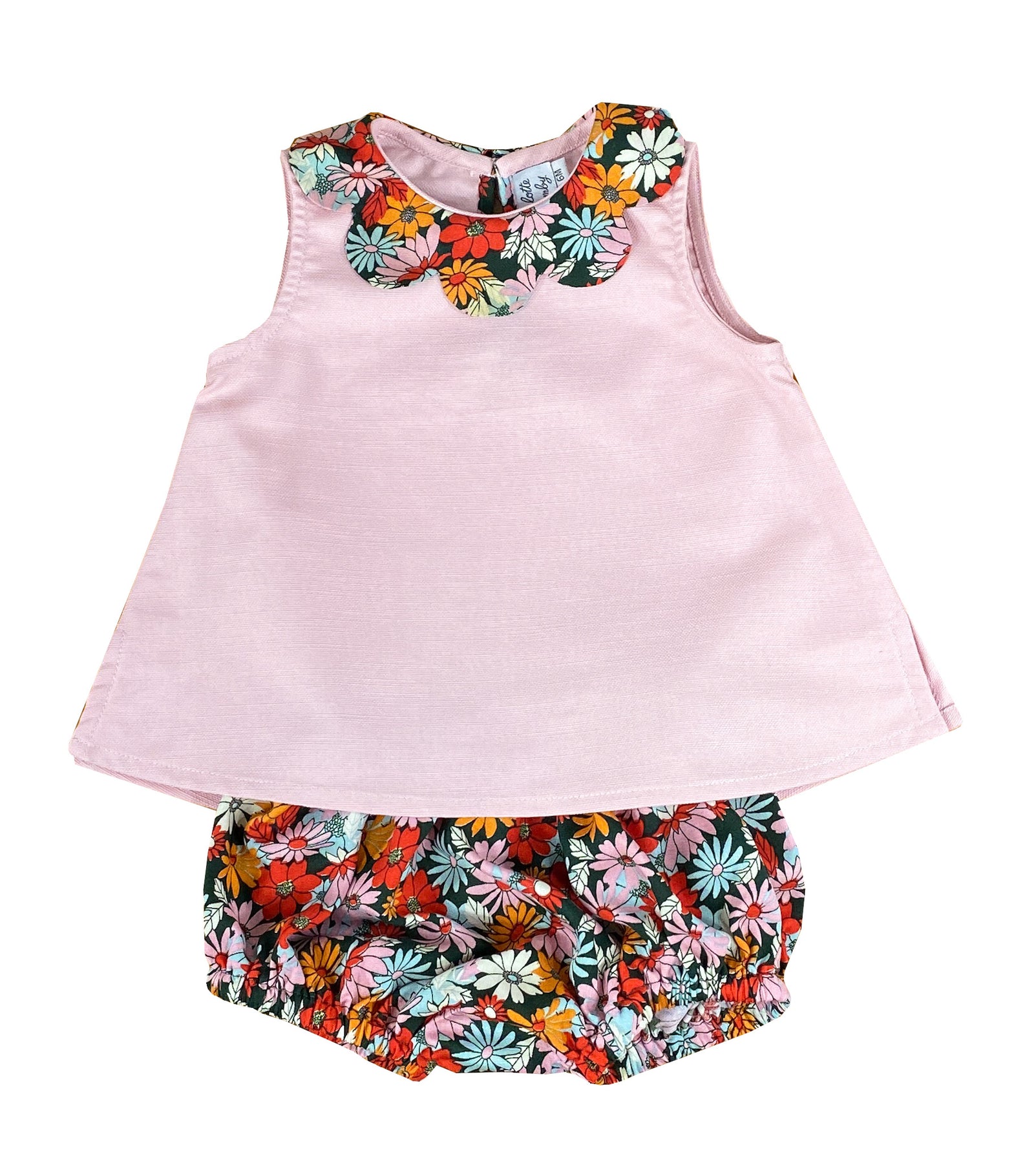 Charlotte sy Dimby summer set for baby girls and toddlers. Pink and daisy petal top blouse and matching bloomer. Handmade classic French style high quality children's clothing