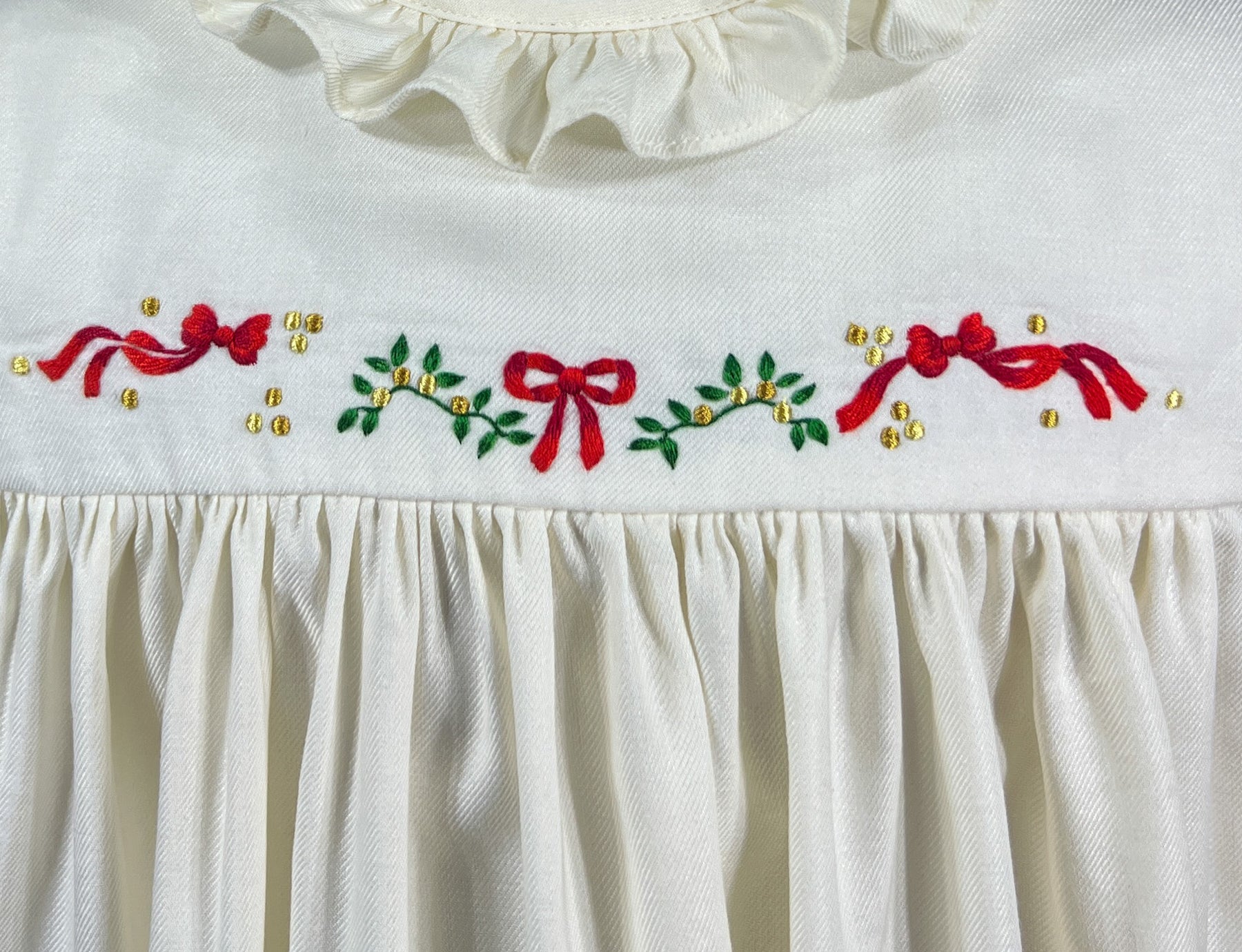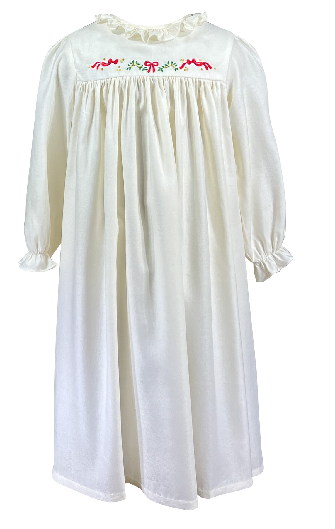 bows and holly holiday nightgown, handmade christmas themed embroidery