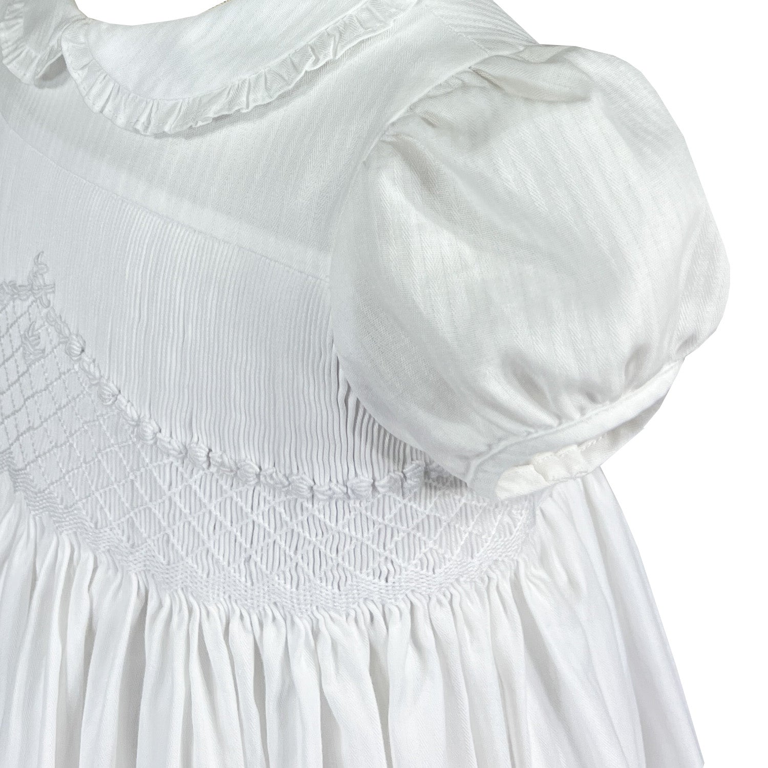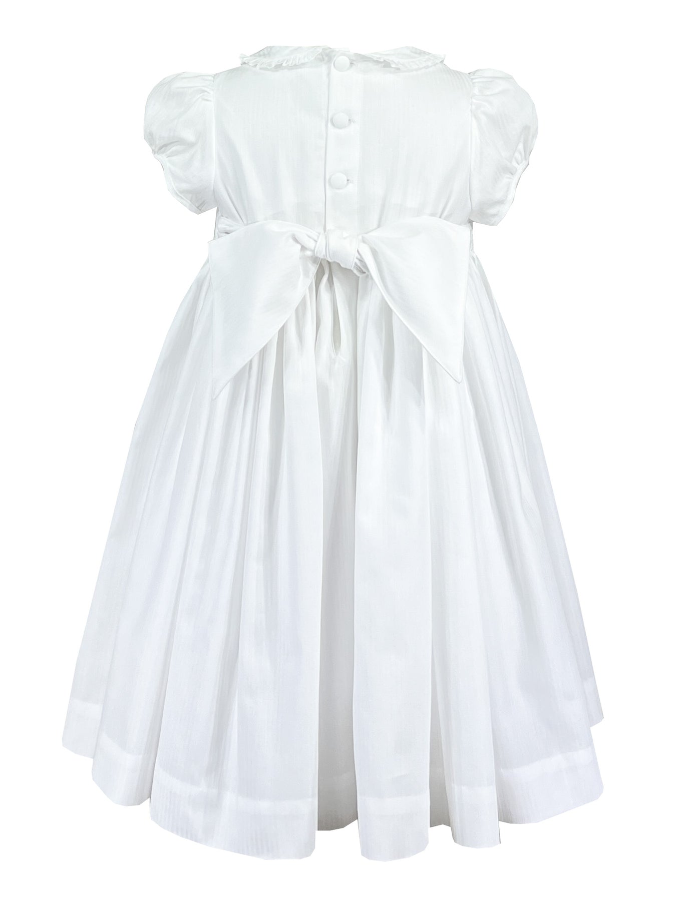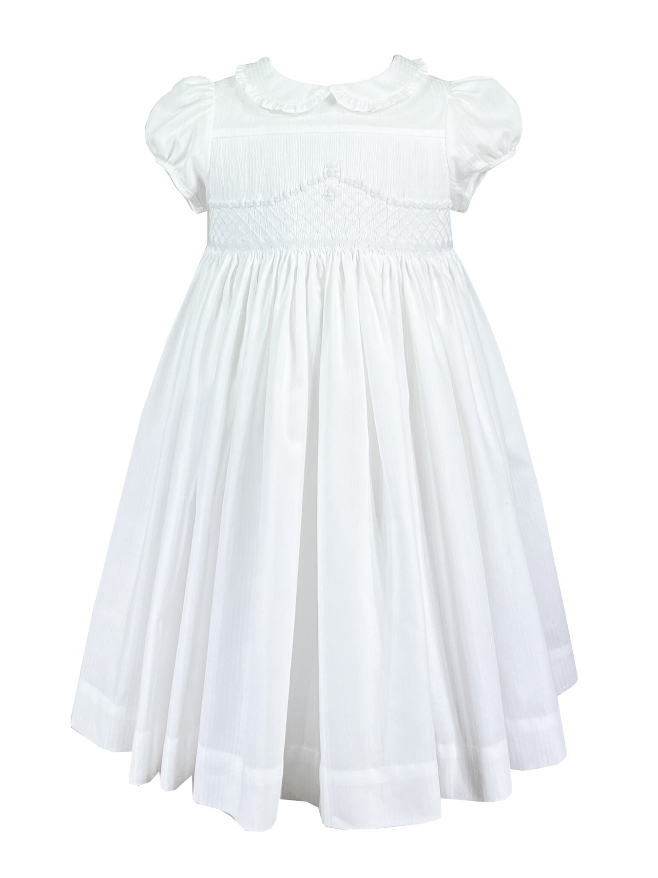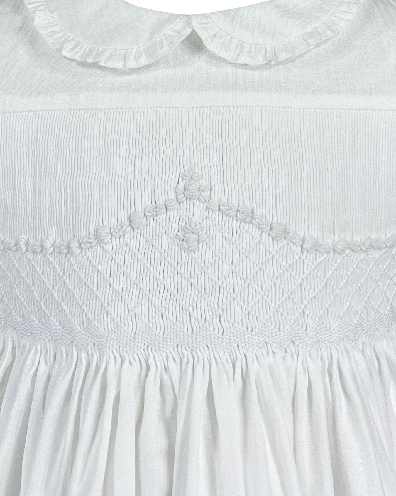 Heirloom White Cerise Dress with Tiara Smocking and Frilled Peter Pan collar