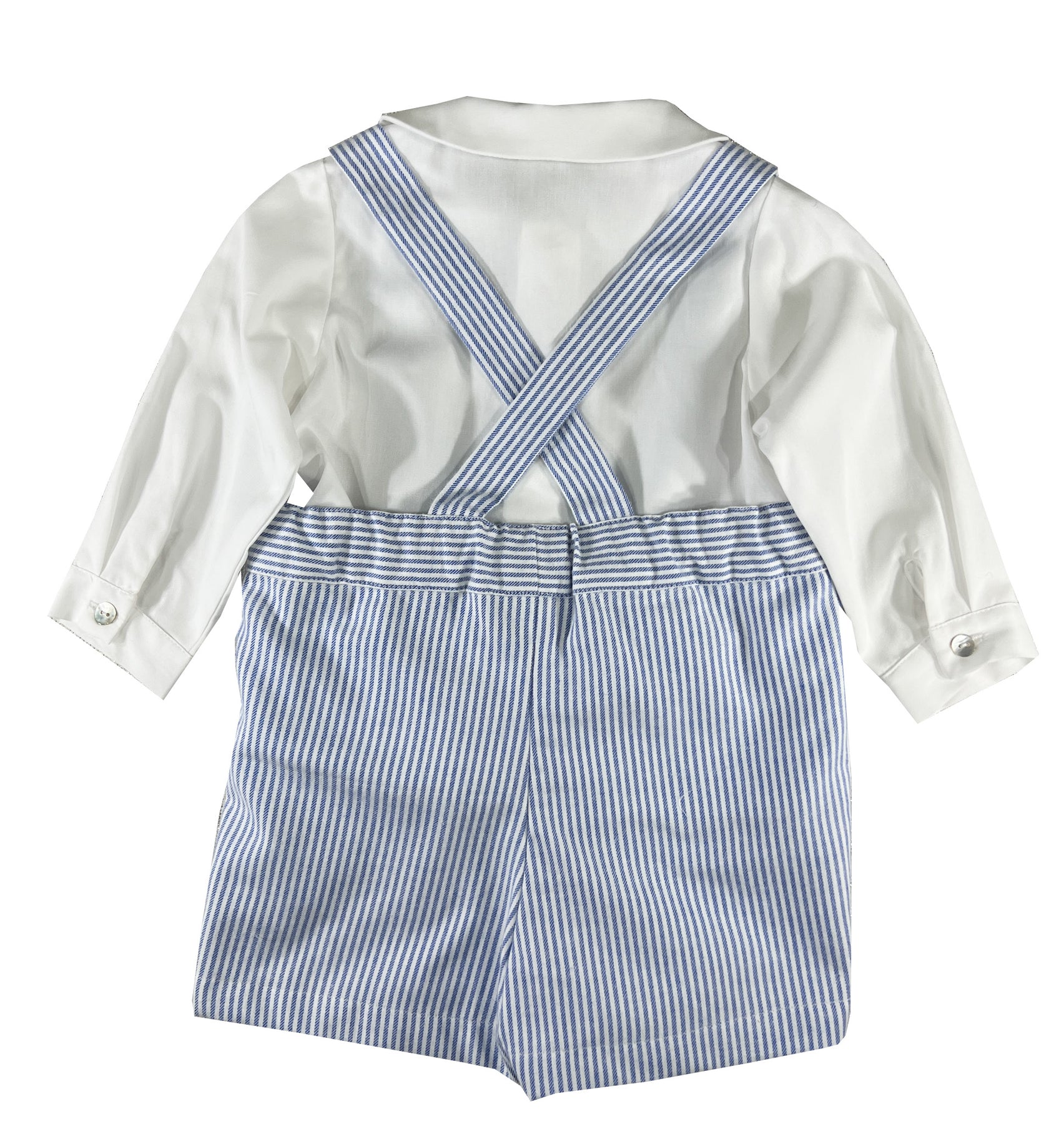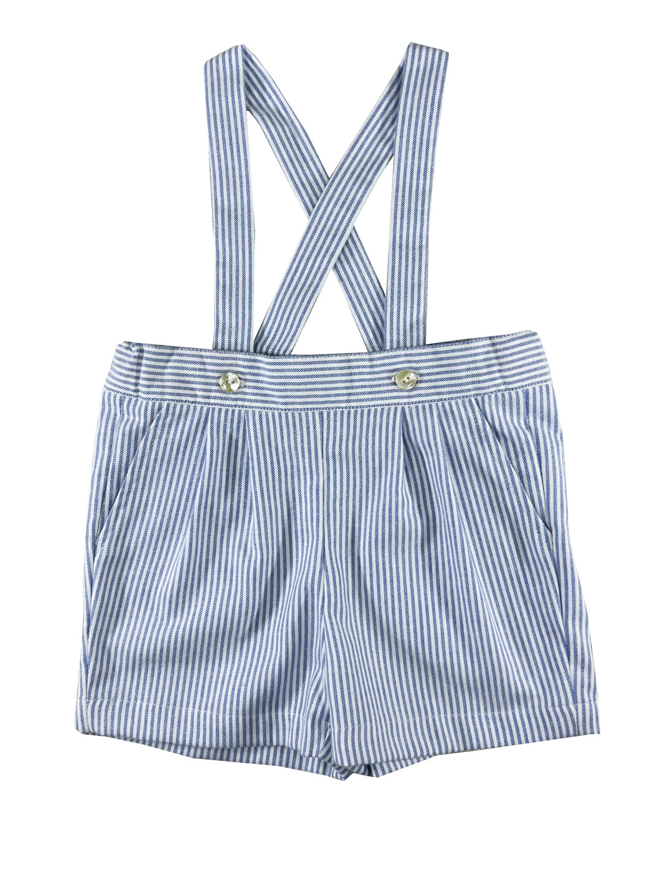 Tailored from classic blue and white stripes, the shorts with suspenders feels as gentle as an early morning nautical breeze. Thoughtfully designed, the adjustable waist accommodates growing little ones while ensuring maximum comfort. Deep side pockets add both practicality and classic styling.